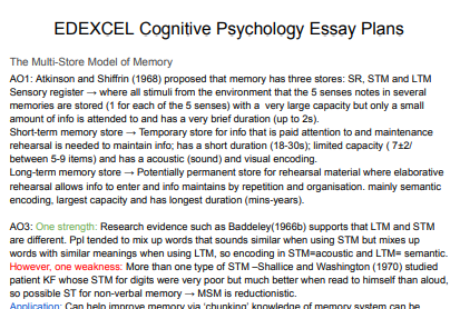 Cognitive Psychology summary essay plans, flexible to help A-Level Edexcel Psychology students achieve that A* grade.